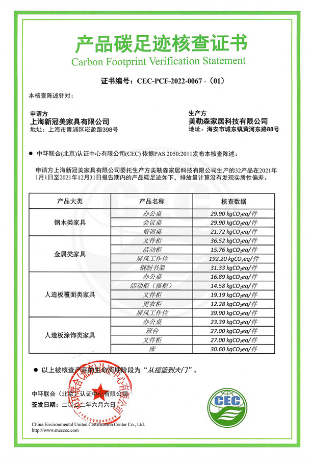 上一篇:美勒森家居科技有限公司-CEC-PCF-2022-0067-(02)-软体类家具+实木类家具