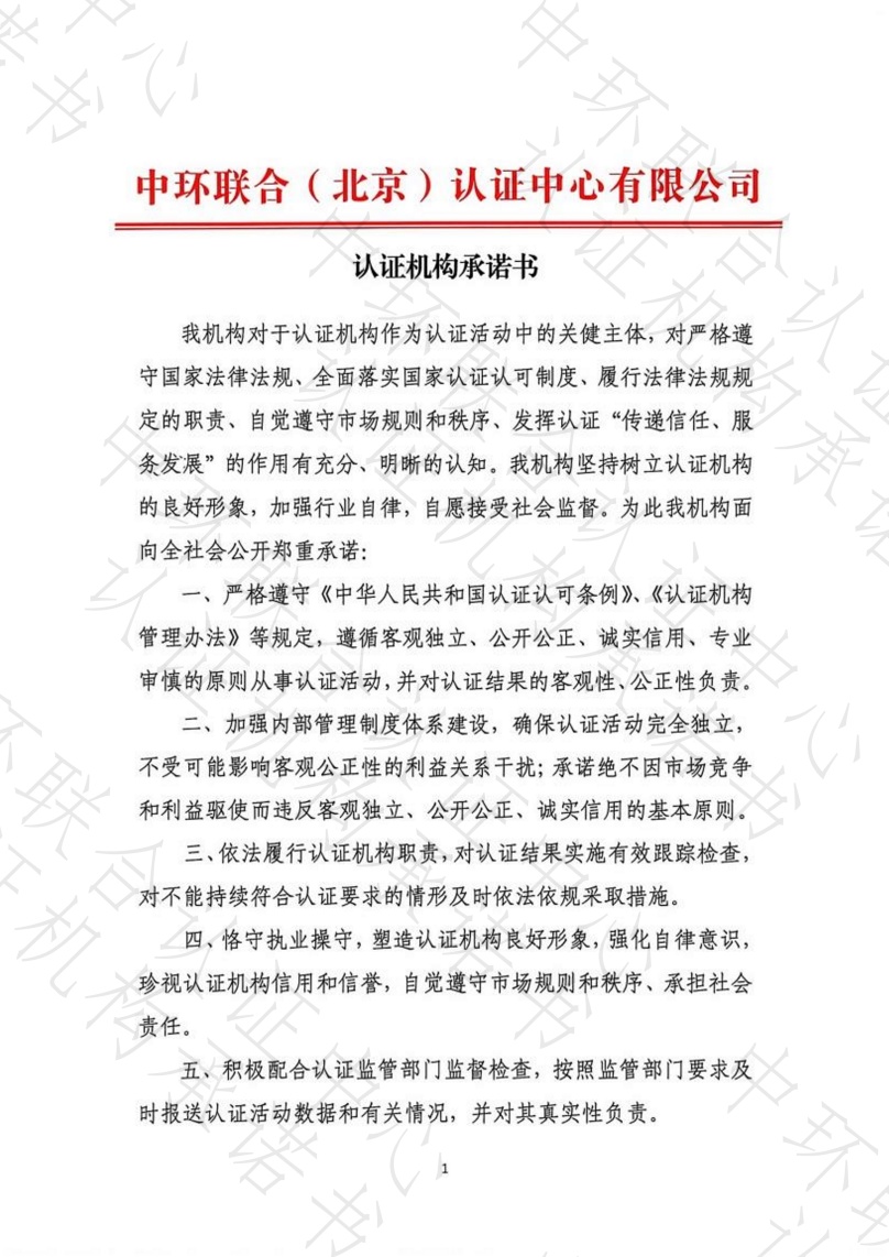 认证机构承诺书